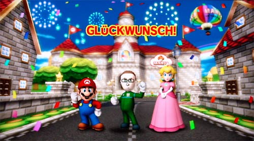 Mario Kart Wii spielt sich (leider) wie die 64er Variante. Sicher, die Steuerung ist sowohl präzise als auch intuitiv, doch irgendwie stört mich die fehlende Kürze der Tracks des ersten Teils; was ich damit sagen will ist, dass sich die Rennen ewig dahinziehen und sich die Spieler nach der ersten Runde derart verteilen, dass man von den Mitstreitern nicht mehr viel mitbekommt - sofern man nicht erster ist.